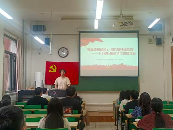 商学院2025级工商管理双学士第二党支部于2025年9月10日在致公101召开了以“铁血荣光映初心 阅兵精神砺党性”为主题的理论学习会。本次会议旨在通过重温2025年9月3日纪念中国人民抗日战争暨世界反法西斯战争胜利80周年阅兵式的伟大历史瞬间,深入学习领会其蕴含的丰富精神内涵和时代价值,引导支部党员坚定理想信念,强化使命担当,将澎湃的爱国热情转化为刻苦学习、矢志报国的实际行动。会议由党支部书记单自涛同志主持,支部全体党员参加了此次学习活动。