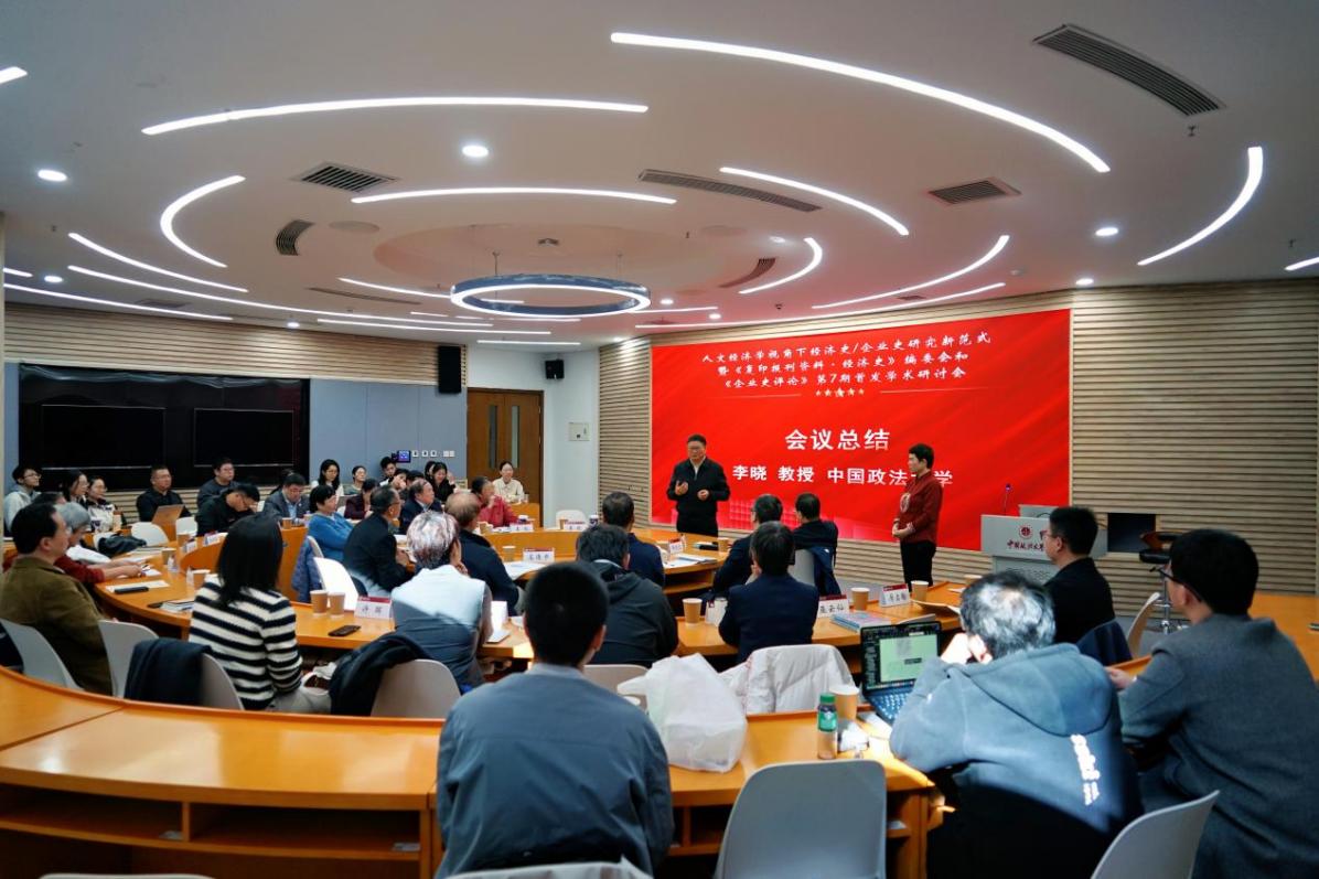 上午的学术研讨由中国政法大学商学院教授、《企业史评论》主编李晓作总结发言。他首先向来自全国各高校及科研院所的与会专家、学者致以诚挚谢意,高度肯定各位专家、学者带来的深刻洞见与宝贵经验,正是大家的倾情分享与深入研讨,让此次交流更具价值。他强调,这样的学术盛会实属难得,不仅为商学院建设提供了重要助力,更将有力推动经济史和企业史领域的创新发展,离不开每一位参与者的鼎力支持与积极贡献。