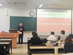 2025年11月12日下午,商学院新入职教师第八场“开讲仪式”于昌平校区明法楼103教室举行。商学院党委书记韩文生教授、副院长郭颖教授、经济系主任邓达教授、经济系副主任兼经济学党支部书记张弛副教授、经济系教师赵文睿、院教研办主任闫俊老师、院教研办副主任冯惠老师和丁会珍老师,以及经济2401班全体同学出席了此次活动。本次开讲仪式由郭颖副院长主持。