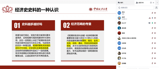 在讨论环节,同学们围绕书中体现的研究方法展开热议。大家一致认为,这部著作不仅提供了丰富的一手史料,更重要的是展现了严谨的治学路径,以问题意识为导向构建逻辑链条。大家深刻认识到,唯有将扎实的史料根基与清晰的理论框架相结合,才是实现研究创新的关键。