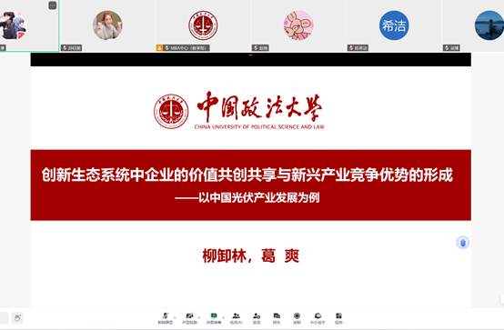 8月27日上午,商学院法商管理系青年学术沙龙暨《法商管理概论》课程建设研讨会顺利召开。本次活动聚焦学术研究与课程建设融合,特别邀请我院工商管理类葛爽老师以《创新生态系统中企业的价值共创共享与新兴产业竞争优势的形成》为主题进行了讲座,法商系刘志雄教授、孟令星副教授,以及部分同学线上线下10余人参与了研讨交流。