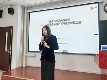 2025年11月10日晚,中国政法大学昌平校区逸夫楼1028教室举办了一场主题鲜明、洞见深刻的“国商大讲堂”实践学术论坛。论坛由商学院国际商务系主办,邀请国际奢侈品行业资深顾问、Beyond Luxe管理咨询创始人李梓宁女士作题为“客户体验的关键要素——国际奢侈品牌的客户关系管理之道”的专题讲座。宏结教授、Beyond Luxe合伙人程可老师作为与谈嘉宾参与讨论,论坛由国际商务系副主任张婷婷副教授主持。国际商务系主任梁涵副教授及工商管理系陈曦副教授出席活动。