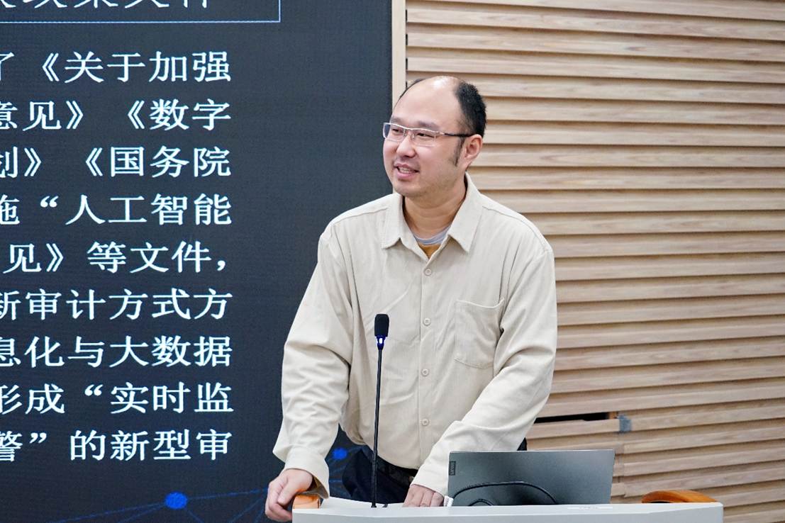 商文江院长在致辞中指出,学院高度重视各界专家在人才培养、理论创新与实践探索等方面的宝贵意见与指导,期待以此为契机推动审计学科实现更高质量发展。随后,何顶老师系统介绍了审计专硕的建设情况,重点突出了“司法审计”与“内部审计”两大特色方向,深度融合学校在法学、纪检监察等学科的优势资源,致力于培养高质量、复合型审计人才。目前,首届毕业生已实现多元化高质量就业,充分体现了人才培养的成效。丛颖男老师则围绕人工智能在审计中的应用与挑战进行了专题报告。他指出,当前AI技术主要用于提升审计效率,但面临责任认定、数据安全及人才技能短缺等挑战。他强调,培养兼具工程思维与审计素养的复合型人才具有紧迫的现实意义,并建议优化课程体系与实践教学机制,帮助学生快速掌握AI技能,满足社会对智能审计人才的需求。