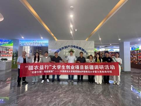 2025年8月21至27日,中国政法大学商学院“疆农益行”大学生创业项目新疆调研团队走进新疆伊宁,与伊犁师范大学霍尔果斯商学院本科生团队展开合作,在霍尔果斯商学院郭海涛老师的带领下对新疆农产品进行调研,期以“电商”的形式助力新疆农产品发展。在为期一周的行程中,两校联合创业团队先后走访了喀赞其创业园区、天山三文鱼养殖基地、巩留县农副产品电商展销中心、那拉乳业生产基地和茶产业文化园,开展了一场内容丰富、意义深远的新疆农产品电商发展可能之旅。
