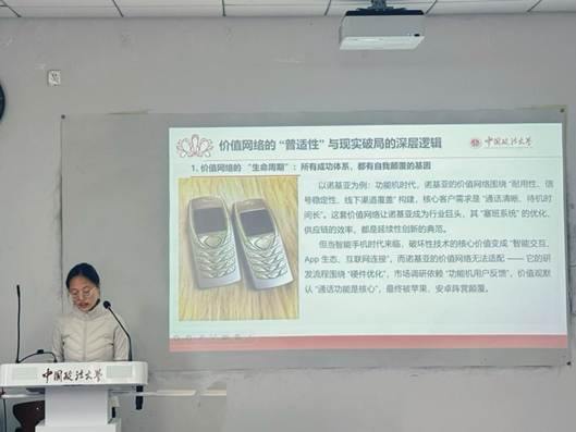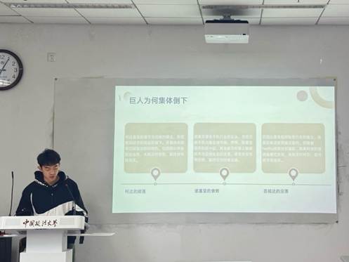 张子阳同学则是探讨了大企业为何会失败的原因。他指出,破坏性创新往往出现在小企业,大企业在破坏性创新出现的初期往往无法察觉,这是因为大企业由于结构体系庞大复杂,且高管对于现状的满足等原因,导致大企业无法走出舒适圈,最终在破坏性创新技术发展成熟后被颠覆。最后,沙枥窈同学在张子阳同学的基础之上,提出价值网络概念,并指出价值网络对于企业的影响。